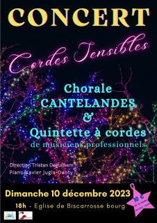 Cantelandes a le plaisir de vous proposer un concert exceptionnel et ce sera le dernier concert avec notre chef Tristan Deguilhem. Il dirigera Cantelandes et l'harmonie de Pomarez